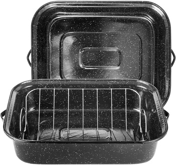 GraniteWare 25LB 용량 19.5In 커버 직사각형 로스터 얼룩덜룩 한 블랙 에나멜 스틸 베이킹 터키 에나멜 바베큐 그릴 블랙